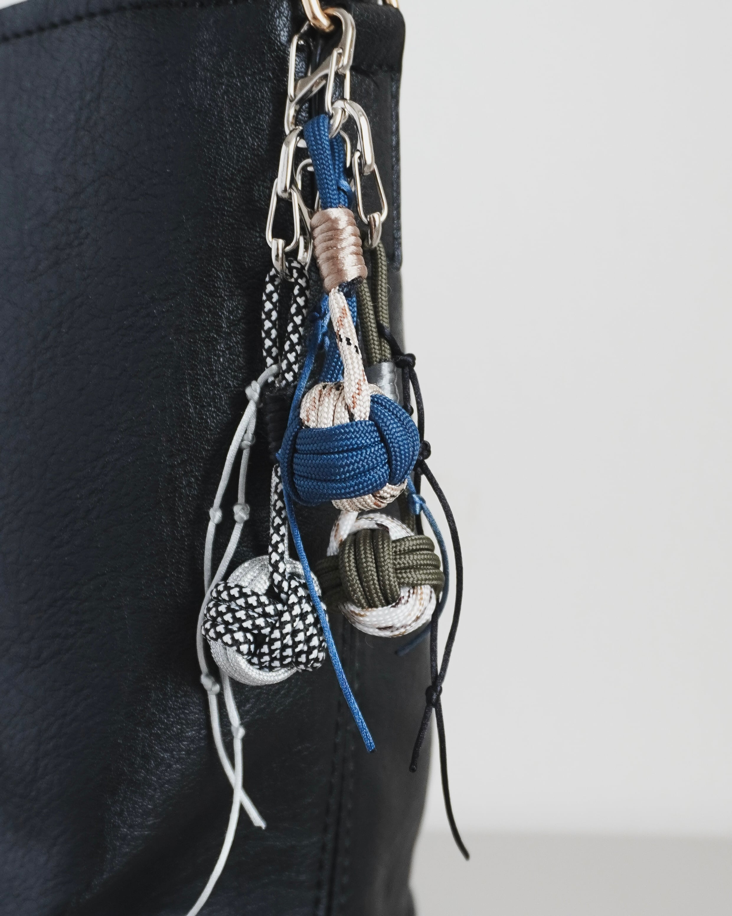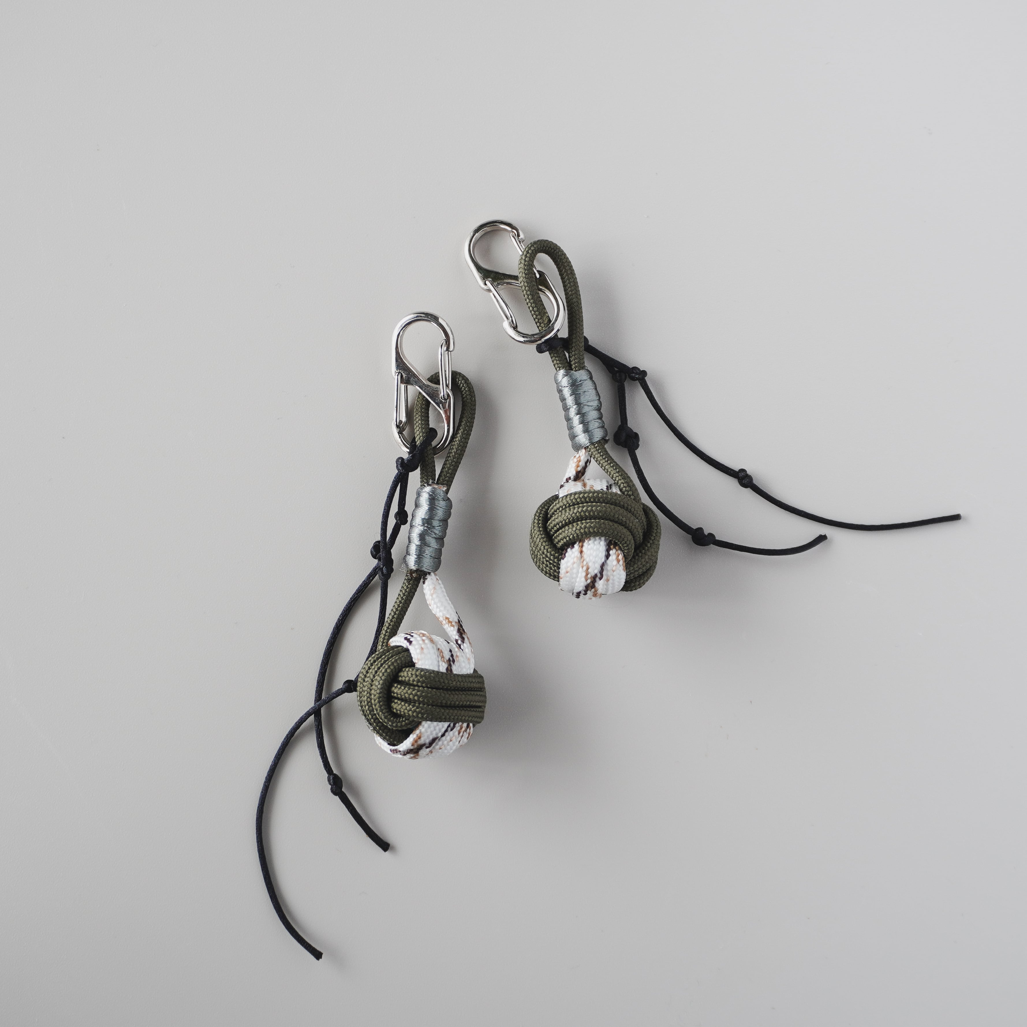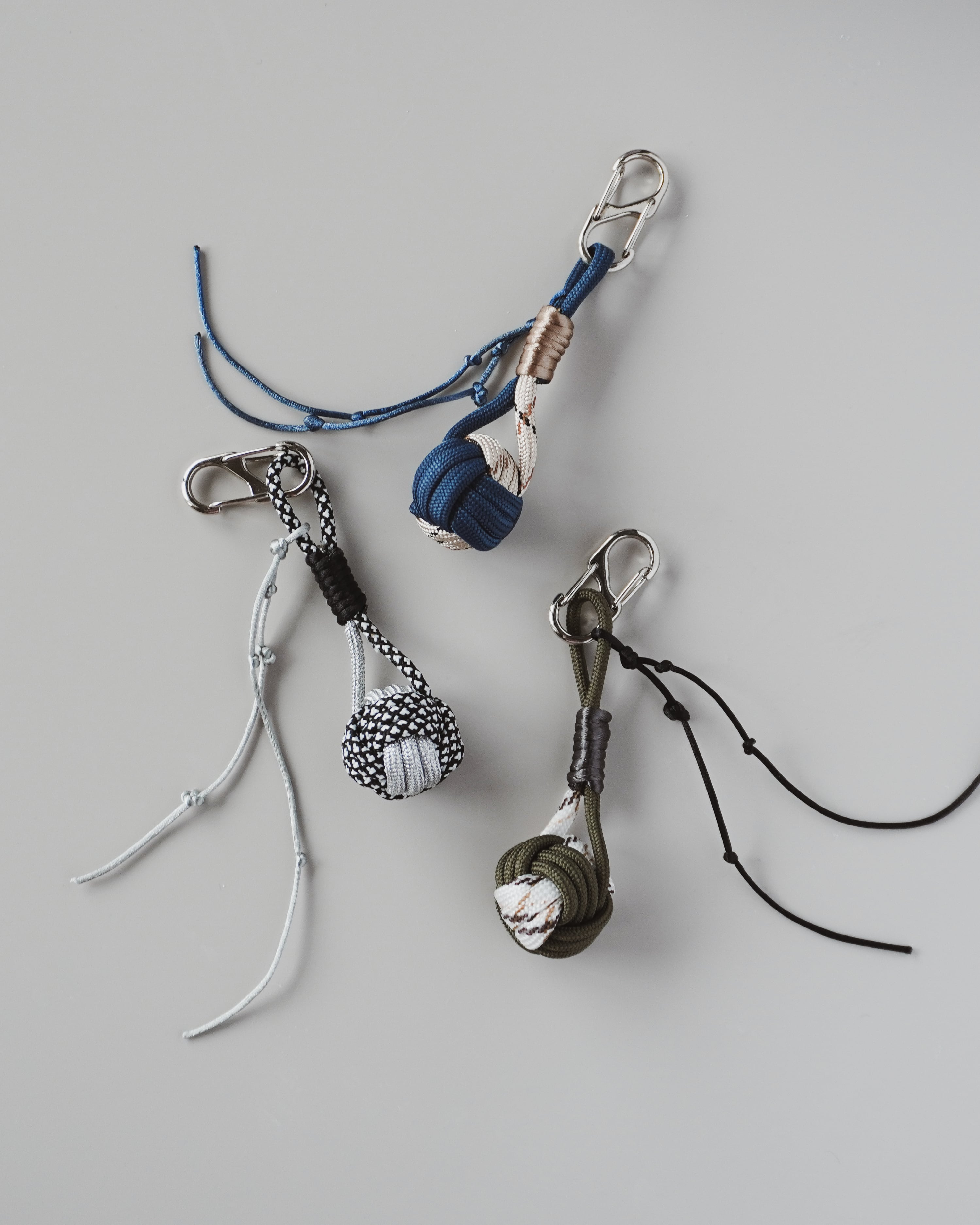 Size: H100mm Weight: 12g 生産や制作の現場で生まれるあまり紐を生かしたキーチェーン。 伝統的なロープノットをif knotらしい結び目を楽しむデザインで。 バッグチャームやキーホルダーとして日常使いにちょうどいいサイズ感です。 簡単に脱着でき、お手持ちのチャームもプラスできるS字カラビナ仕様。 中にはビー玉が入っております。